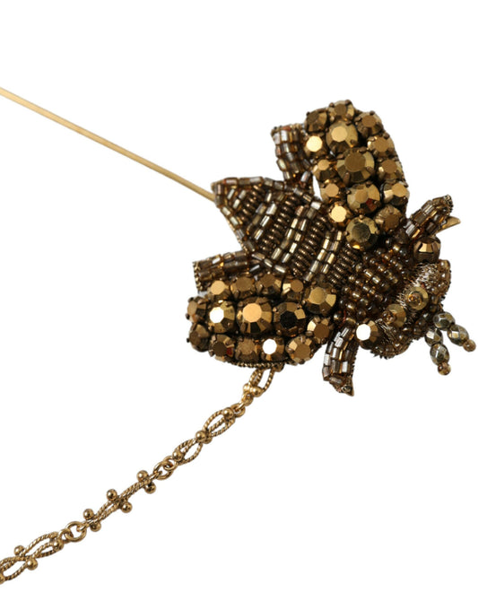 Dolce & Gabbana Gold Brass Crystal Bee Men Brooch Lapel Pin