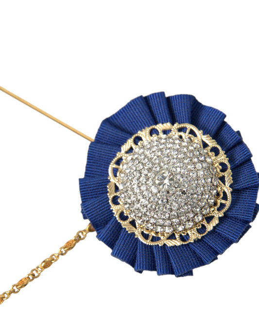 Dolce & Gabbana Gold Brass Crystal Men Brooch Lapel Pin