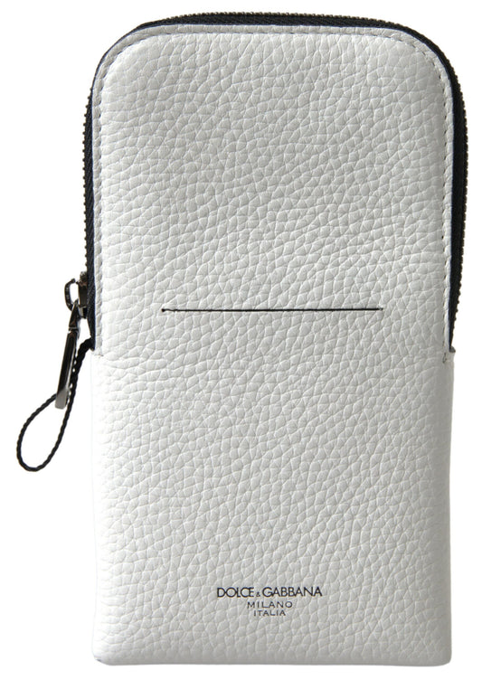Dolce & Gabbana Elegant White Leather Phone Crossbody Bag