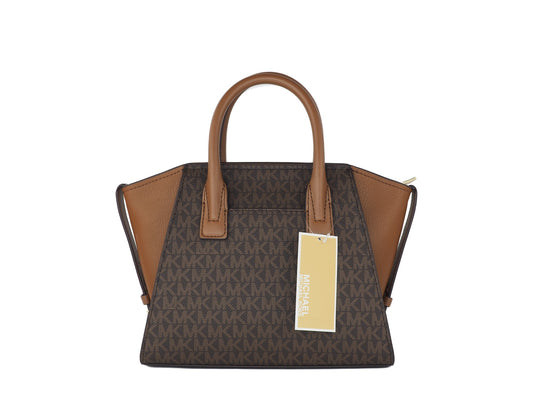Michael Kors Avril Small Black PVC Leather Top Zip Satchel Crossbody Bag Purse