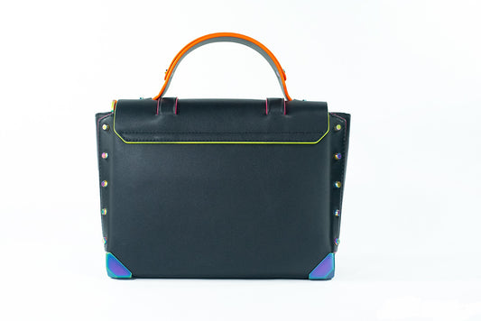 Michael Kors Carmen Medium Black Gold Saffiano Leather Satchel Handbag Purse Bag